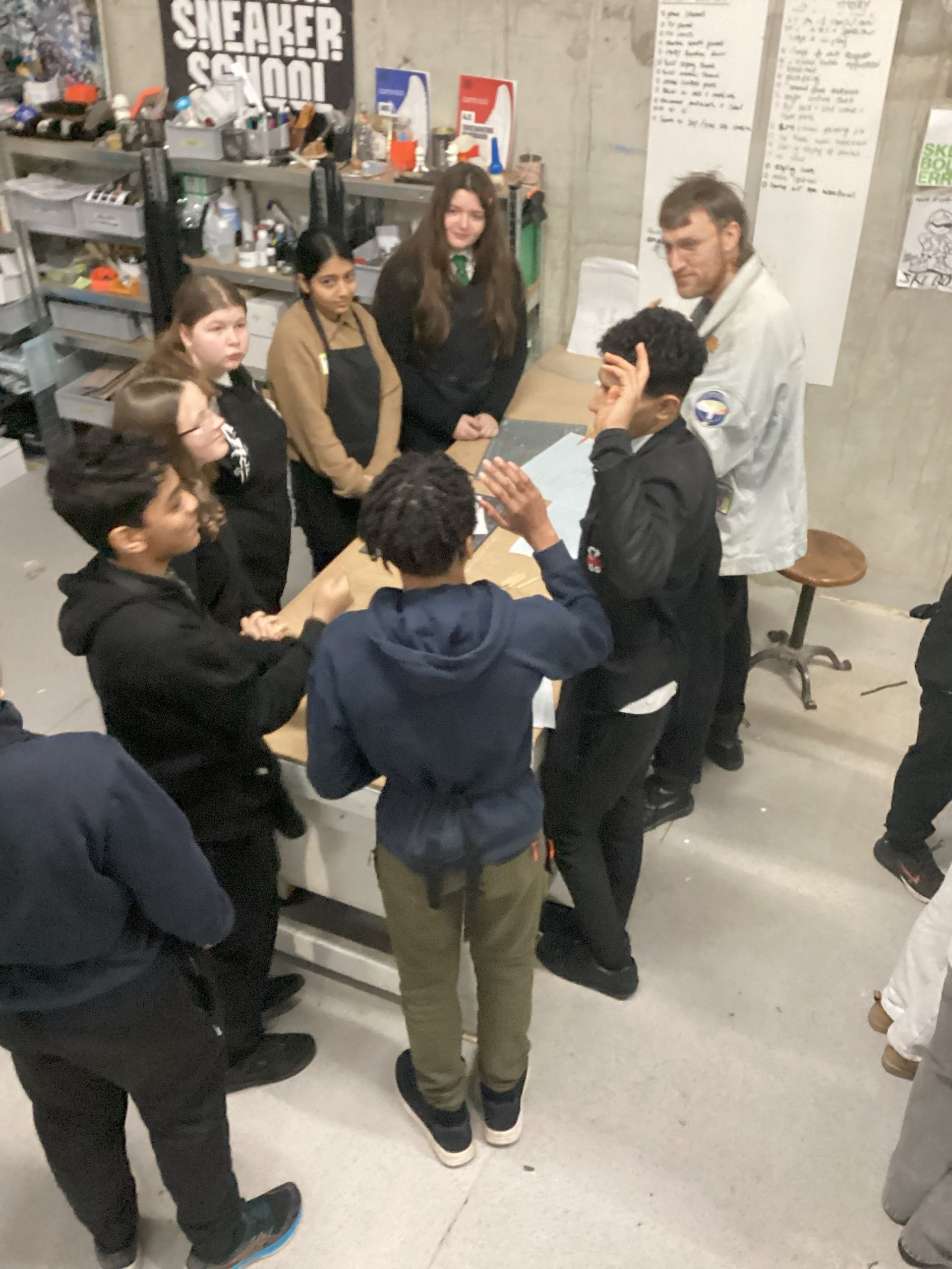 On Wednesday 14th January, me and my team travelled to the London sneaker shop to work with the amazing designers to create our prototype. Both teams got a budget and worked together to decide what materials would be best for the prototype. Then we worked under a time limit to create the prototype and both teams split the work amongst themselves to work most efficiently. It was an overly fun and creative session where we got the opportunity to handle tools that we wouldn’t usually use. We also practised our presentation and communicated as a team on how our project would be best presented.
